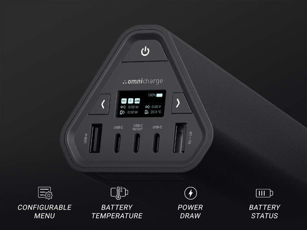 デバイスに必要な電力量やOmnichargeの供給電力を推測する必要はもうありません。OLEDスクリーンにスマートな電力表示が表示されるので、デバイスの電力レベルをより適切に管理し、一日を通して必要な電力量を把握できます。電力供給はあなたの手の中に。