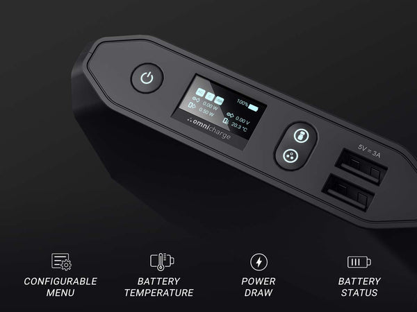 デバイスに必要な電力量やOmnichargeの供給電力を推測する必要はもうありません。OLEDスクリーンにスマートな電力表示が表示されるので、デバイスの電力レベルをより適切に管理し、一日を通して必要な電力量を把握できます。電力供給はあなたの手の中に。